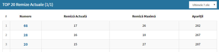 Remiza reprezintă numărul de extrageri consecutive în care un număr (sau o combinație de numere) nu a fost extras.
